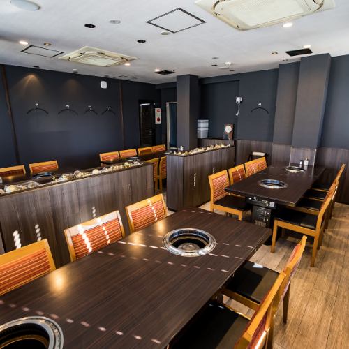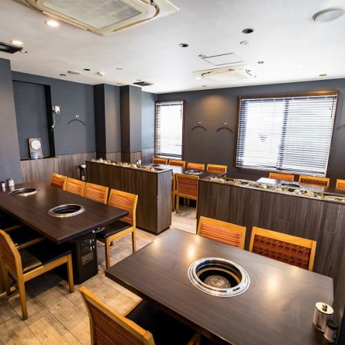 女子会でのご利用に特におすすめなのが2階テーブル席(4名×4卓、6名×2卓)です。シックな雰囲気の中で、美味しい焼肉と豊富なドリンクを堪能できます。誕生日や記念日といったお祝いの会にもピッタリです!賑やかで心地よい時間をご堪能ください。
