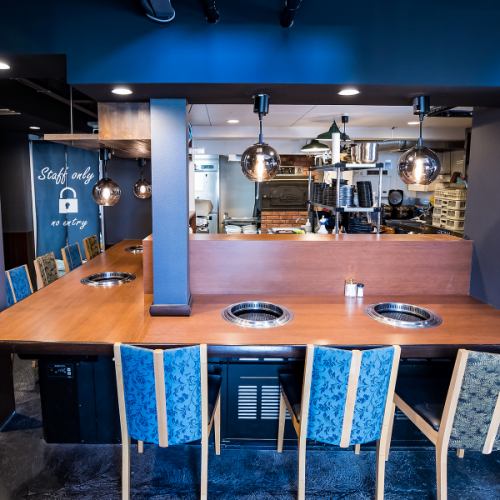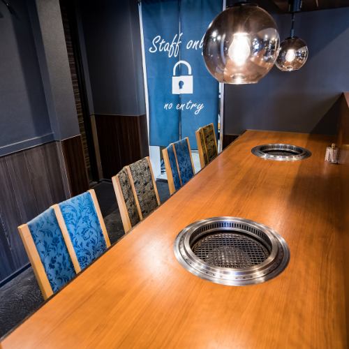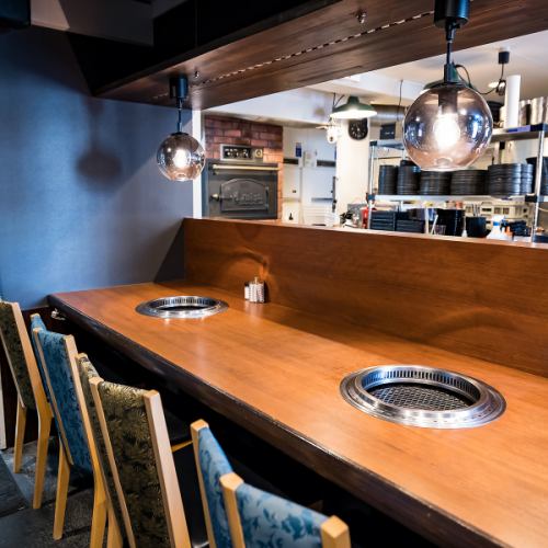 1階のカウンター席は、特別なデート利用に最適です。2名掛けが4席あり、親密な距離感で美味しい焼肉と会話を楽しめます。目の前で肉が焼ける臨場感は、二人のムードを盛り上げます。記念日や誕生日といった大切な日のディナーにもぴったりです☆